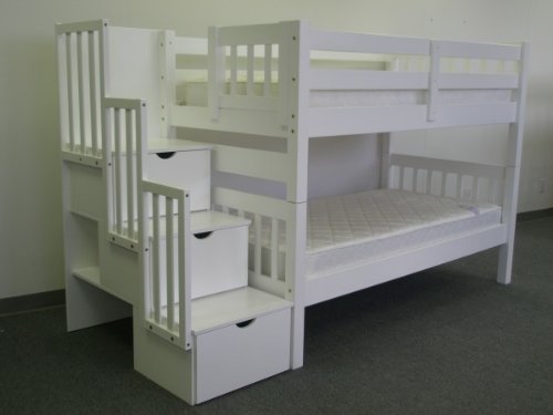 Buy Stairway Bunk Bed Twin over Twin in White with 3 Drawers Built in to the Steps Now